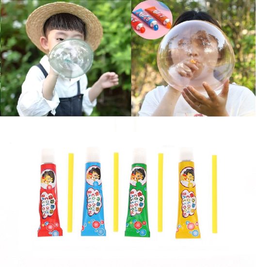 Magic Bubble Toy,Use The Top Of The Cap To Pierce The Mouth Of The Tube, Squeezing Out A Proper Amount Of Foam Glue, Stick The Bubble Glue To The Mouth Of The Blowpipe, Blow To The Appropriate Size Of Bubbles And Then Remove It.